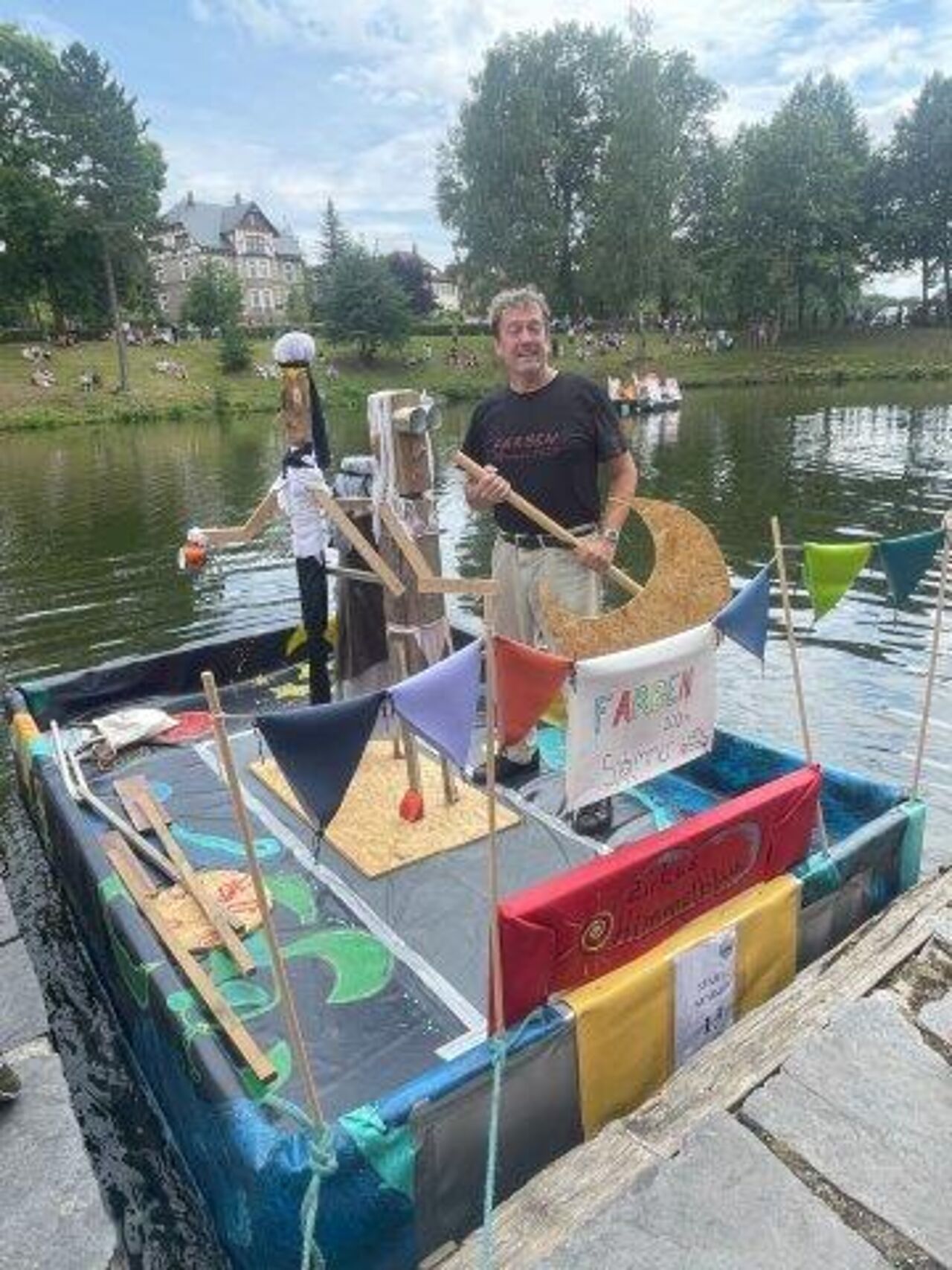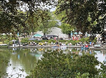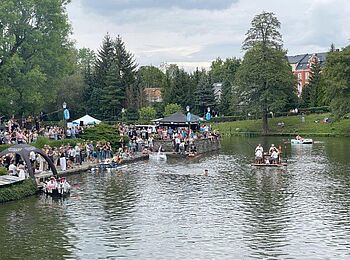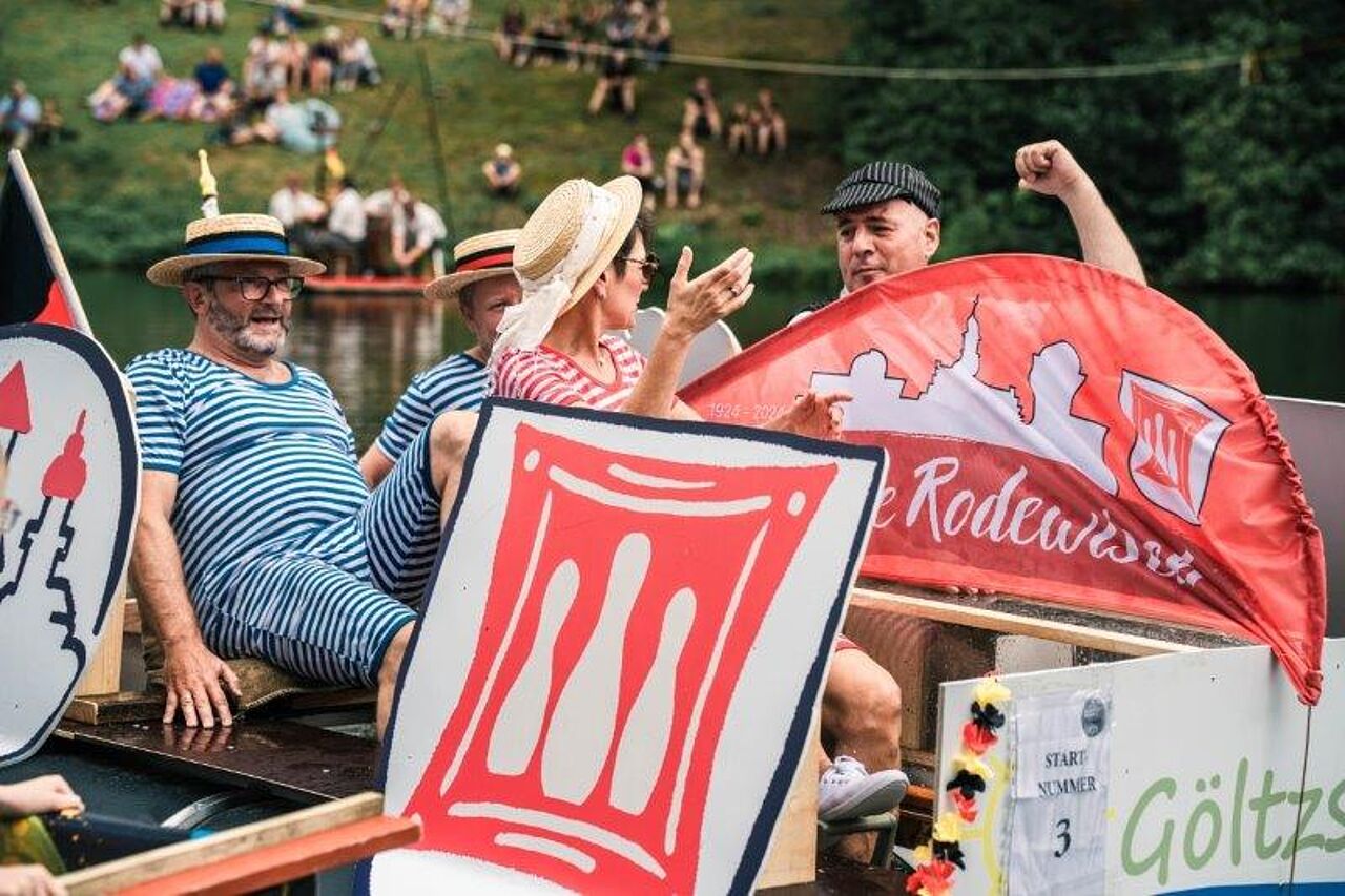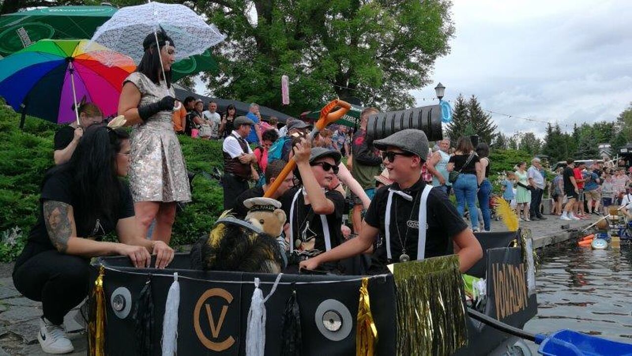 Am Nachmittag des 27. Juli 2024 verwandelte sich die Schlossinsel Rodewisch nunmehr zum dritten Mal zur Event-Location der besonderen Art. Viele Besucher waren auf der Insel und versuchten, einen Platz mit guter Sicht zu finden. Andere gruppierten sich auf dem Rasen gegenüber der Bootsanlegestelle, um sich das Spektakel, was sich vor ihren Augen abspielte, nicht entgehen zu lassen. Jedes der 22 Teams hatte sich getreu dem Motto “Die wilden 20-er Jahre - gestern und heute” äußerst kreative Gedanken gemacht und seine Wasserkiste sowie die Team-Bekleidung dementsprechend angepasst.
