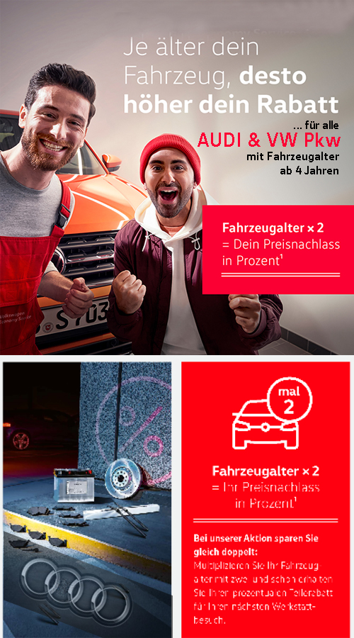 * Unser Angebot ist gültig bis 30.11.2025 und gilt für ausgewählte Originalbremsscheiben- und Beläge exklusive Einbau für Ihren Volkswagen, Audi oder Skoda. Keramik- und Feststellbremsen sind von der Aktion ausgenommen. Die Aktion ist nicht mit anderen rabattierten Angeboten, Aktionspreisen oder mit unserer Kundenkarte kombinierbar. Teilekauf ohne Reparatur ist im Rahmen diese Aktion ausgeschlossen.